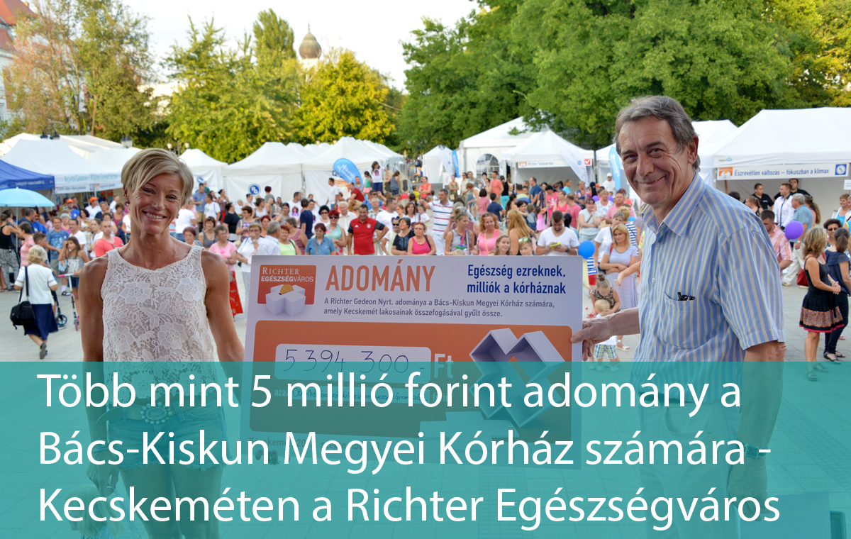 A nap zárásaként Beke Zsuzsa, a Richter Gedeon Nyrt. kormányzati kapcsolatok és PR vezetője adta át Dr. Svébis Mihály főigazgatónak a Bács-Kiskun Megyei Kórházat megillető 5.394.300 forintos adományt. A kórház az átadott összegből újszülöttek-koraszülöttek számára lélegeztető gépek, valamint stroke betegek számára infúziós ágyak beszerzését tervezi.