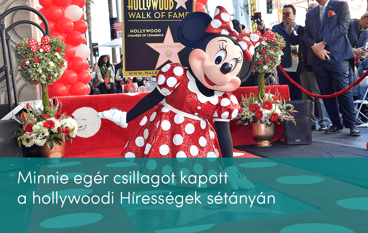 A népszerű rajzfilmfigura, Minnie egér csillagot kapott a hollywoodi Hírességek sétányán. Január 22-én a hollywoodi kereskedelmi kamara egy csillagot adományozott a Disney kabalafigurájának Minnie egérnek, a hollywoodi Hírességek sétányán. Ahogy az Hollywoodban lenni szokott, Minnie is megannyi emlékezetes alakítást nyújtott, mégis Mickey egér aratta le a babérokat- jegyezte meg a hétfői ceremónián Bob Iger, a Disney vezetője, hozzátéve, hogy a szórakoztatóiparban eltöltött 90 év után igazán itt volt az ideje, hogy az egérlány is megkapja az őt megillető elismerést. A Minnie egérnek szentelt csillag leleplezésén Mickey egér, valamint stílszerűen talpig pöttyökbe öltözött Katy Perry, világszerte elismert énekesnő és pop ikon, és Heidi Klum német modell is részt vett.